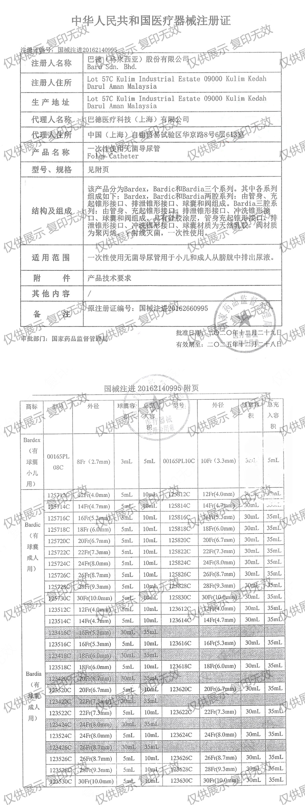 適用范圍:一次性使用無菌導(dǎo)尿管用于小兒和成人從膀胱中排出尿液。