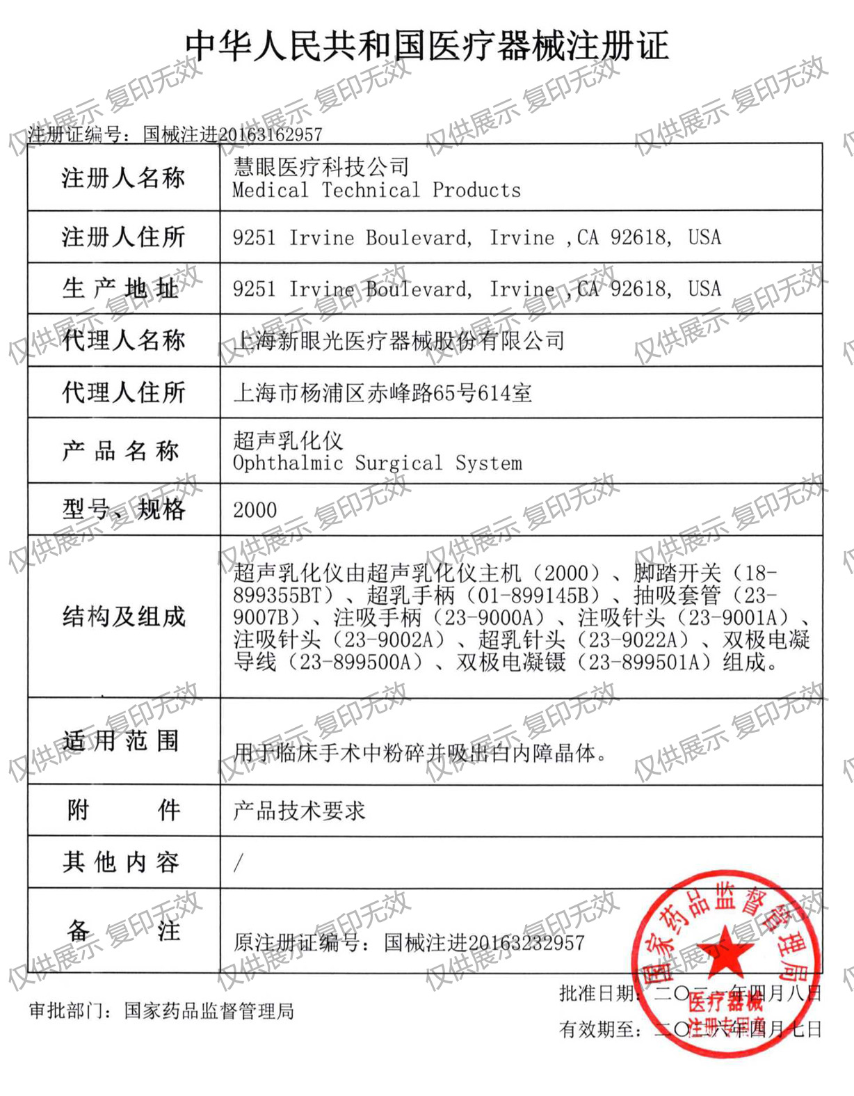 適用范圍:用于臨床手術(shù)中粉碎并吸出白內(nèi)障晶體。